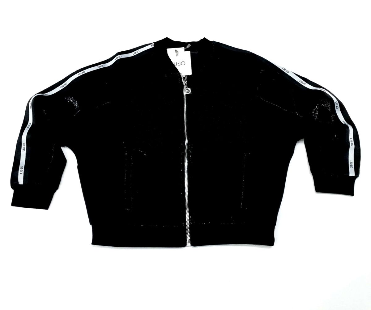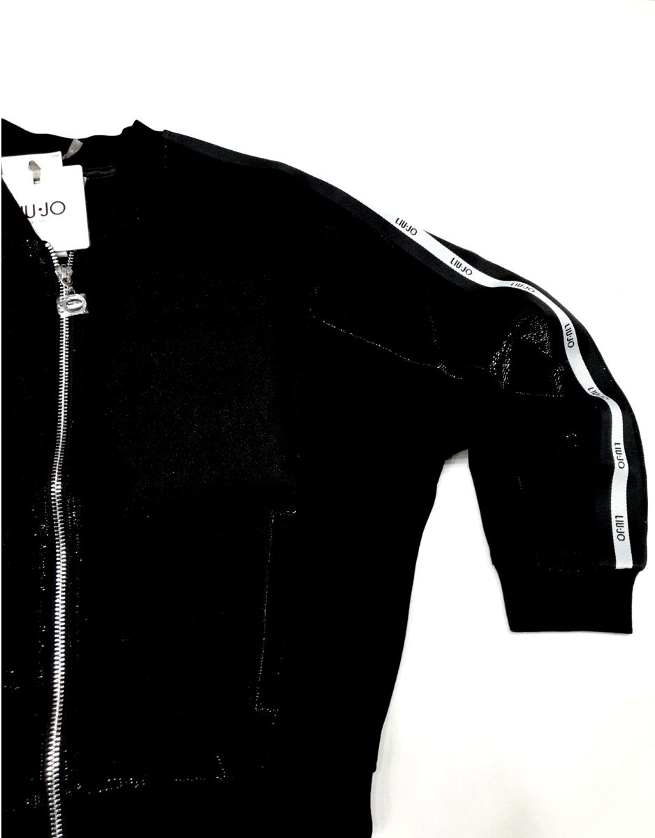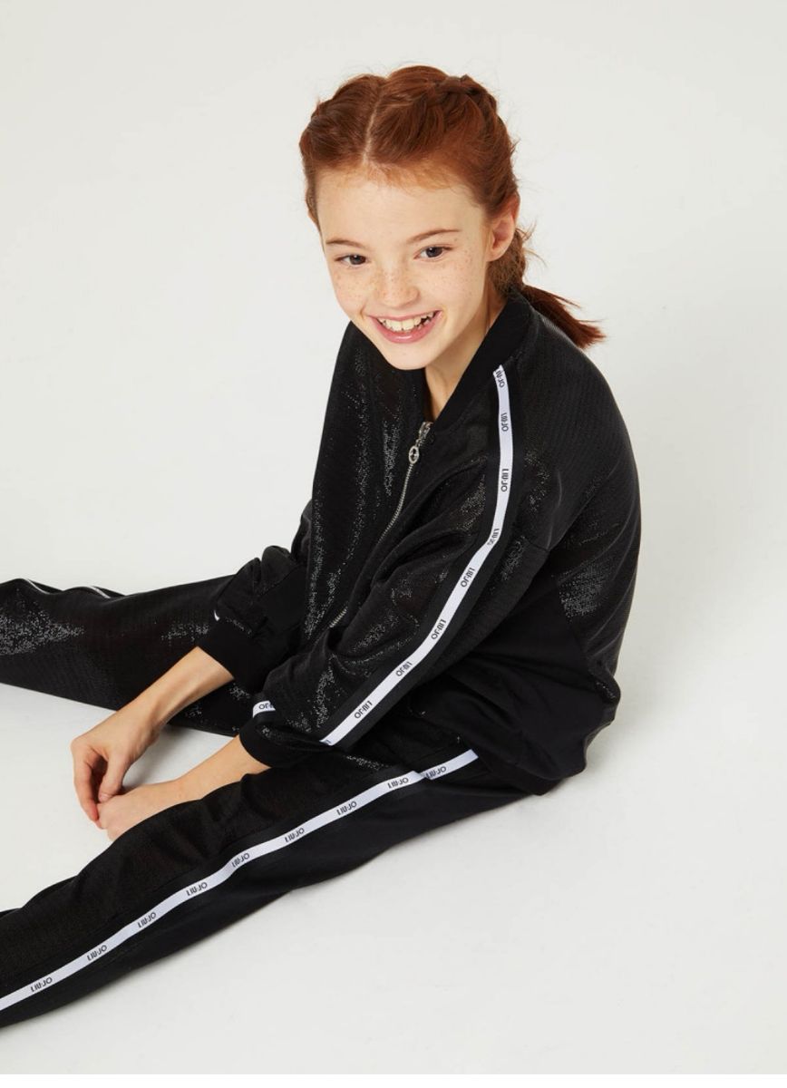 felpa aperta in particolare tessuto trasparente effetto glitter con le bande laterali e logo