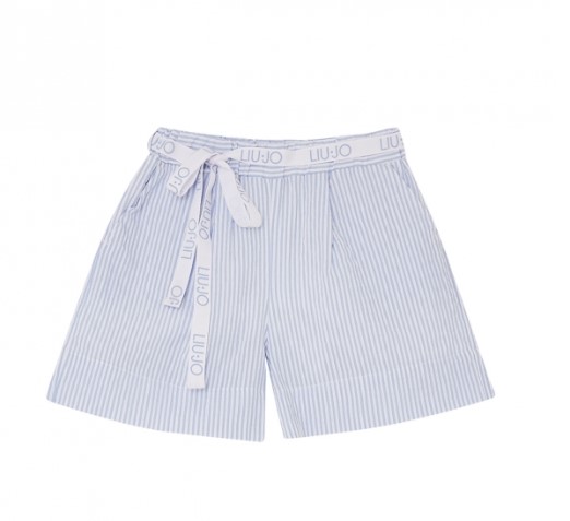 Pantaloncino in cotone a righe cielo