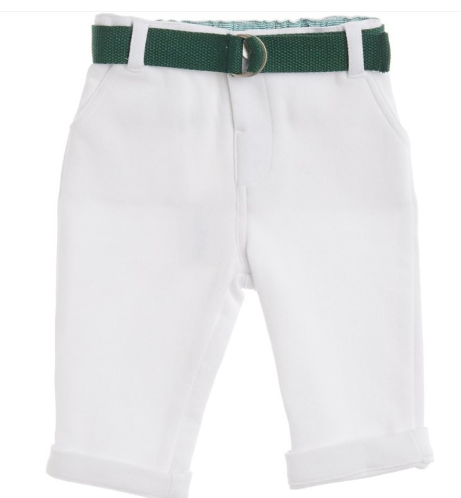 pantaloni bimbo in felpa piquet bianca con cintura verde