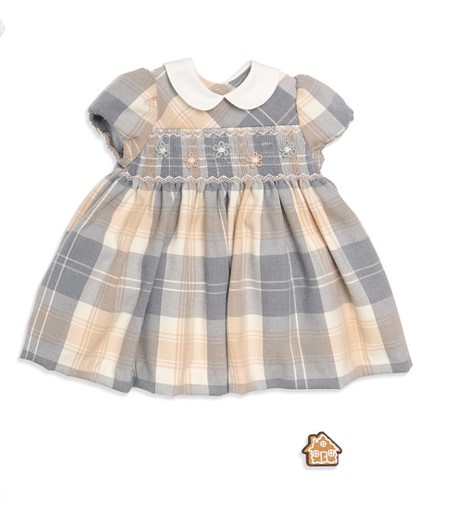 Vestito in tartan ricamo punto smock manica lunga