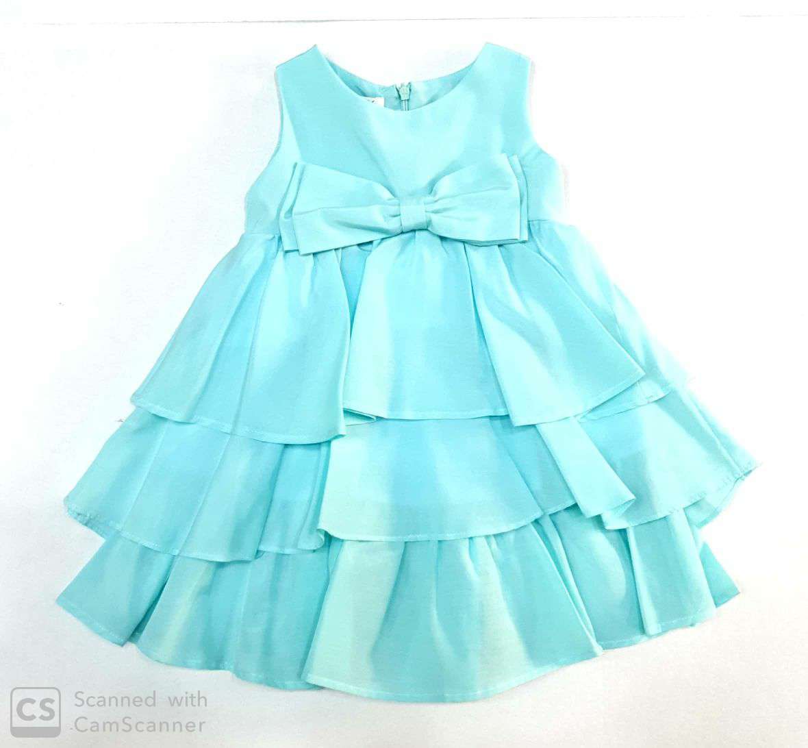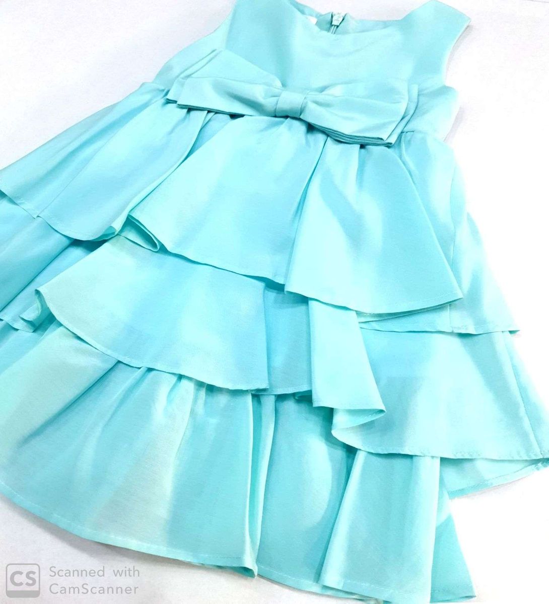 ABITO IN COTONE VERDE ACQUA A BALZE CON FIOCCO DAVANTI