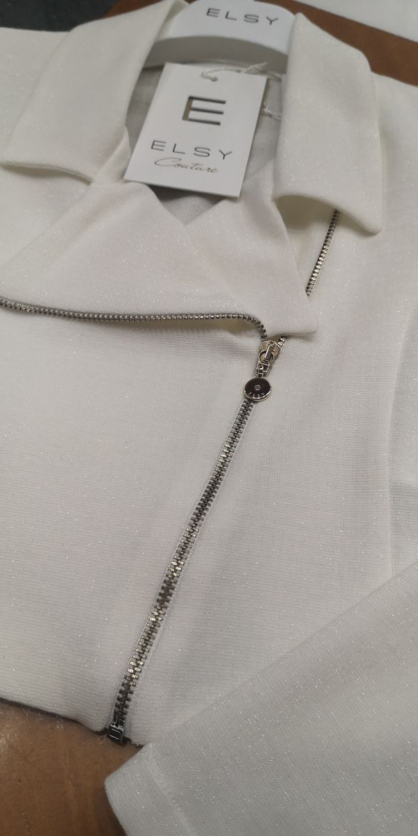 Particolare giubbotto modello chiodo in cotone glitter avorio