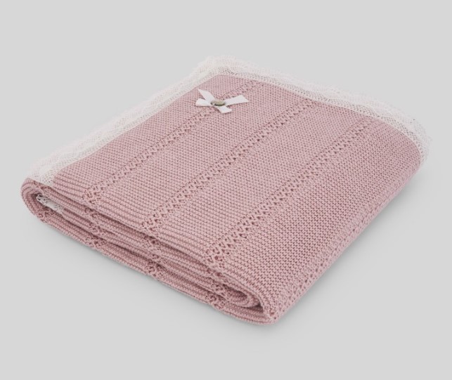 Descrizione: Scialle in maglia con dettaglio in pizzo a contrasto e fiocco decorativo abbinato con placca PAZ Rodríguez per neonato. Perfetto da infilare nella culla. U