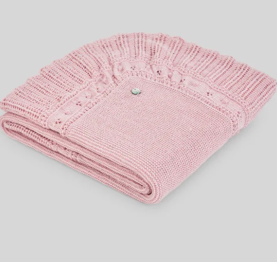 Descrizione: Copertina in maglia traforata per neonato con bordo a onde. La sua texture leggera e il design avvolgente la rendono perfetta per le prime passeggiate o per il passeggino. Realizzata con materiali traspiranti, offre calore e comfort.